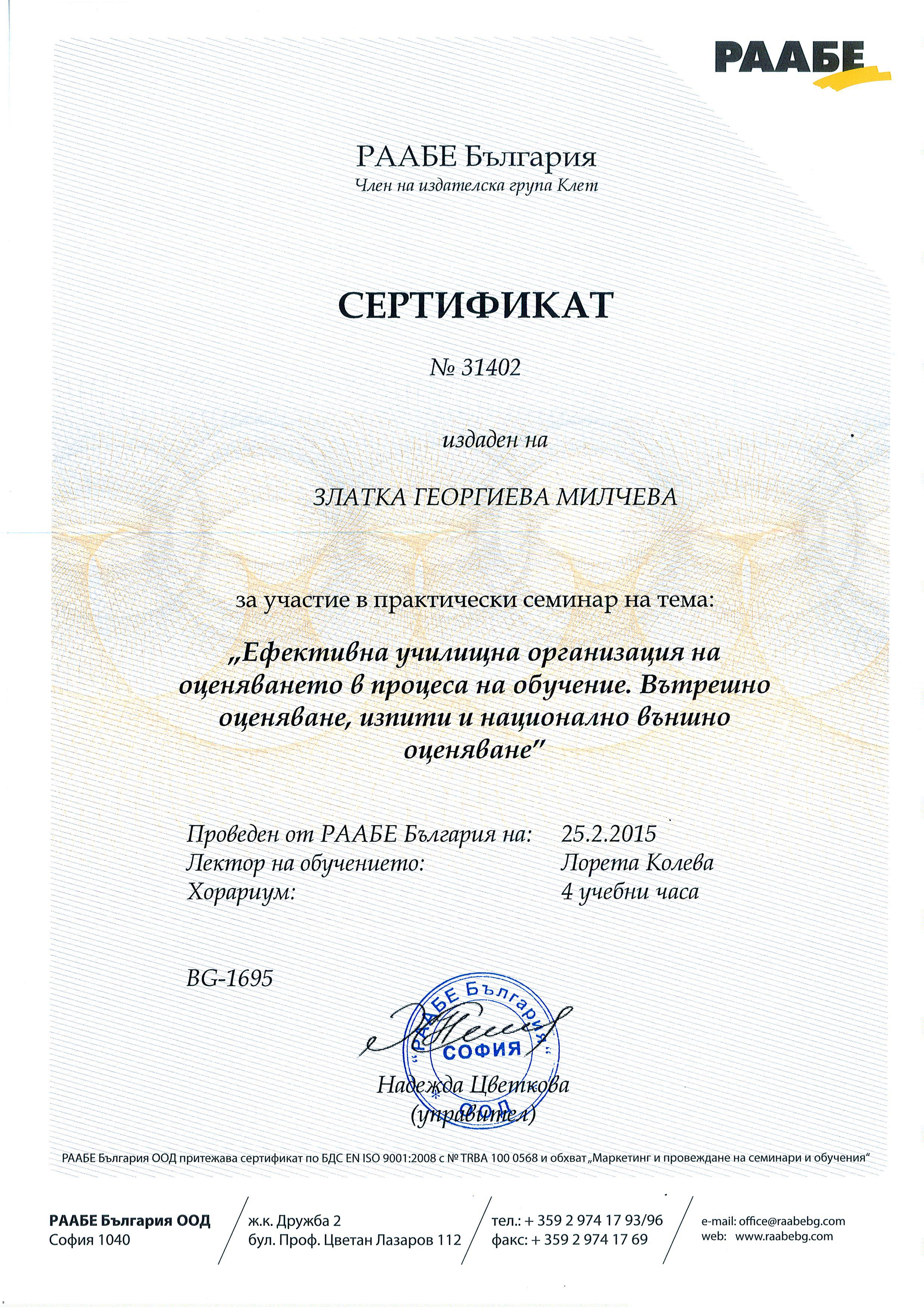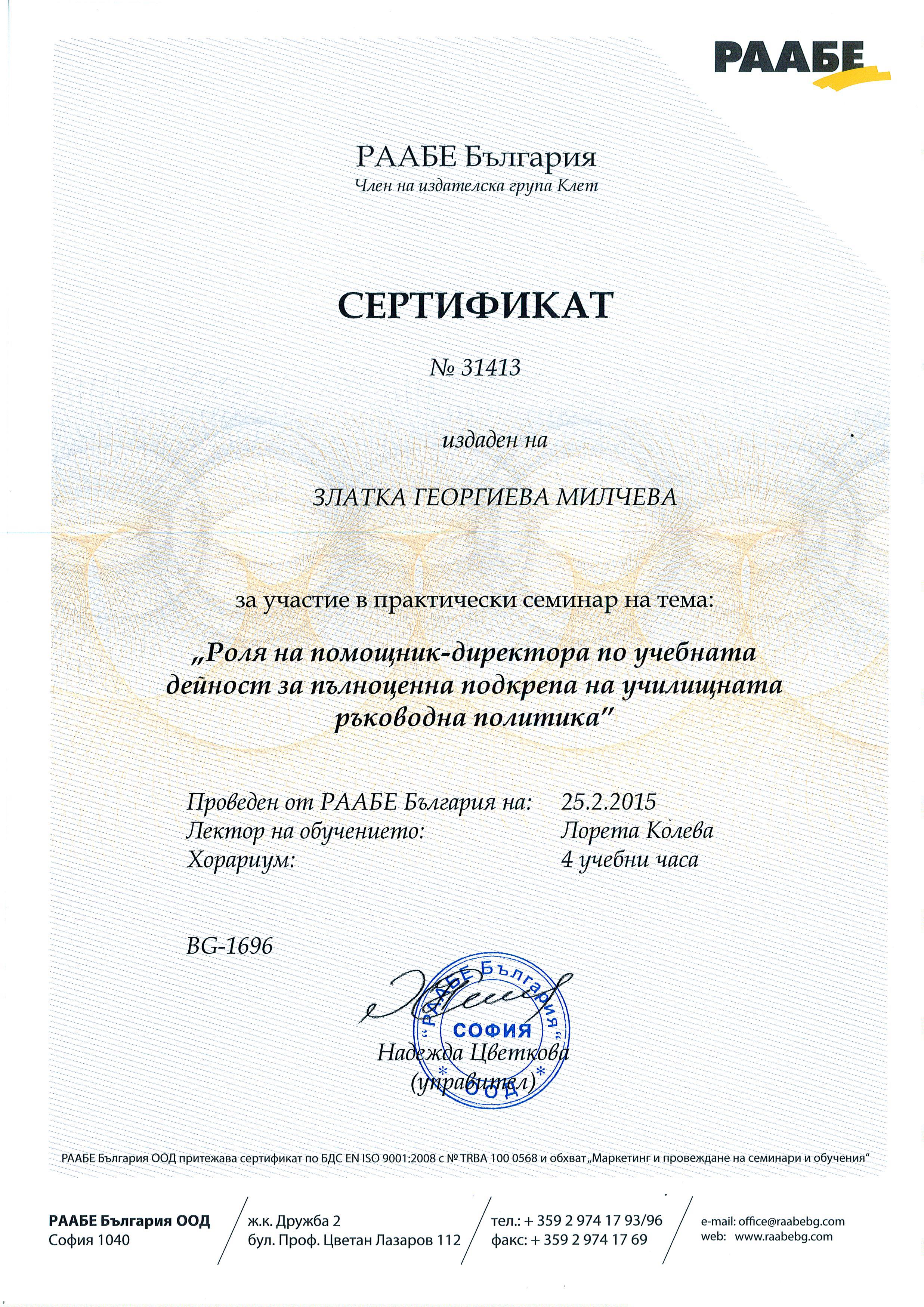 �������� ������� ������� �� ����: "����������� �� ������������� �����������" - 2015 �.