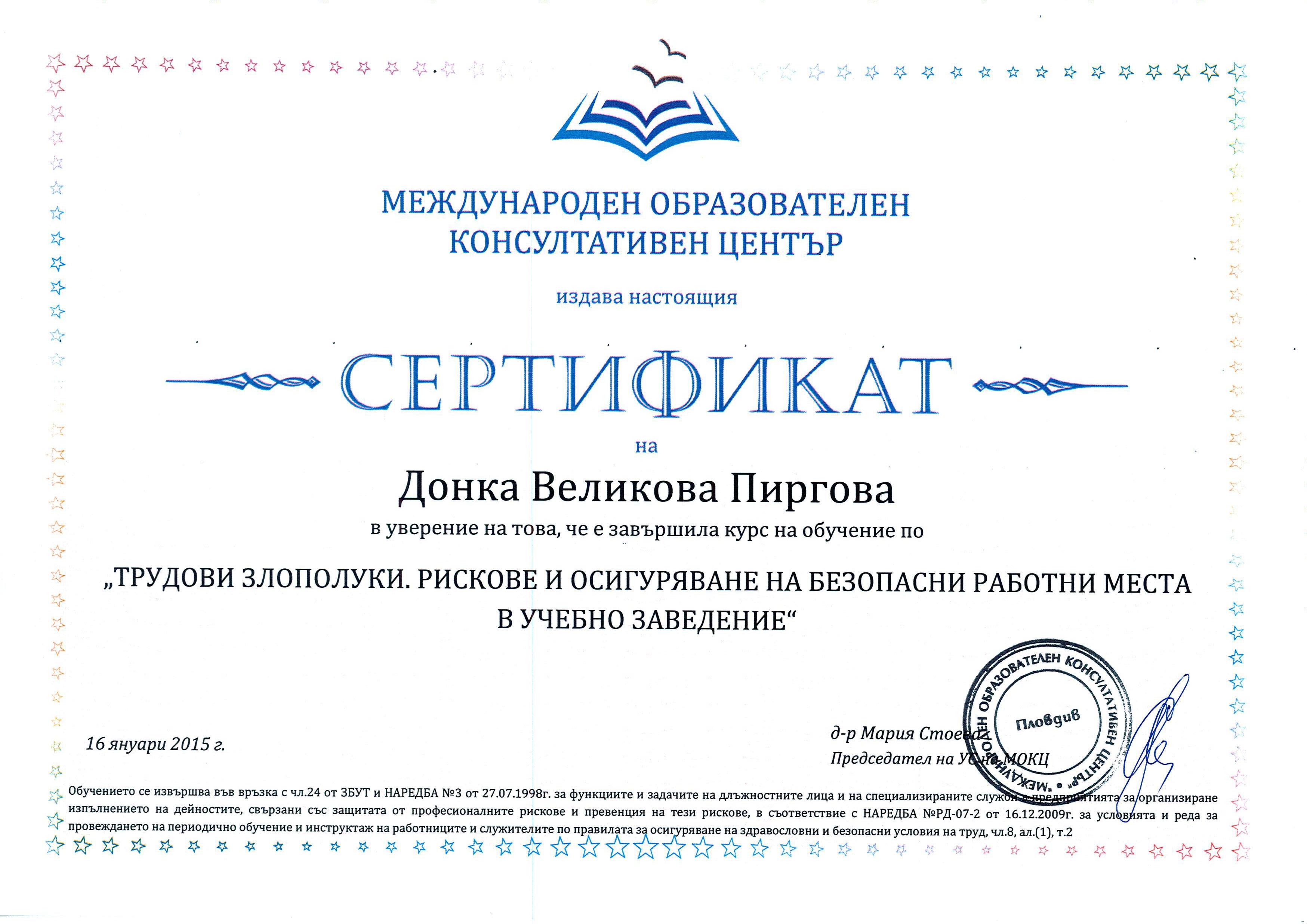 �������� ������� ���� �� �������� �� ����: "������������ � ��������� ������� �� ����" - 2015 �.